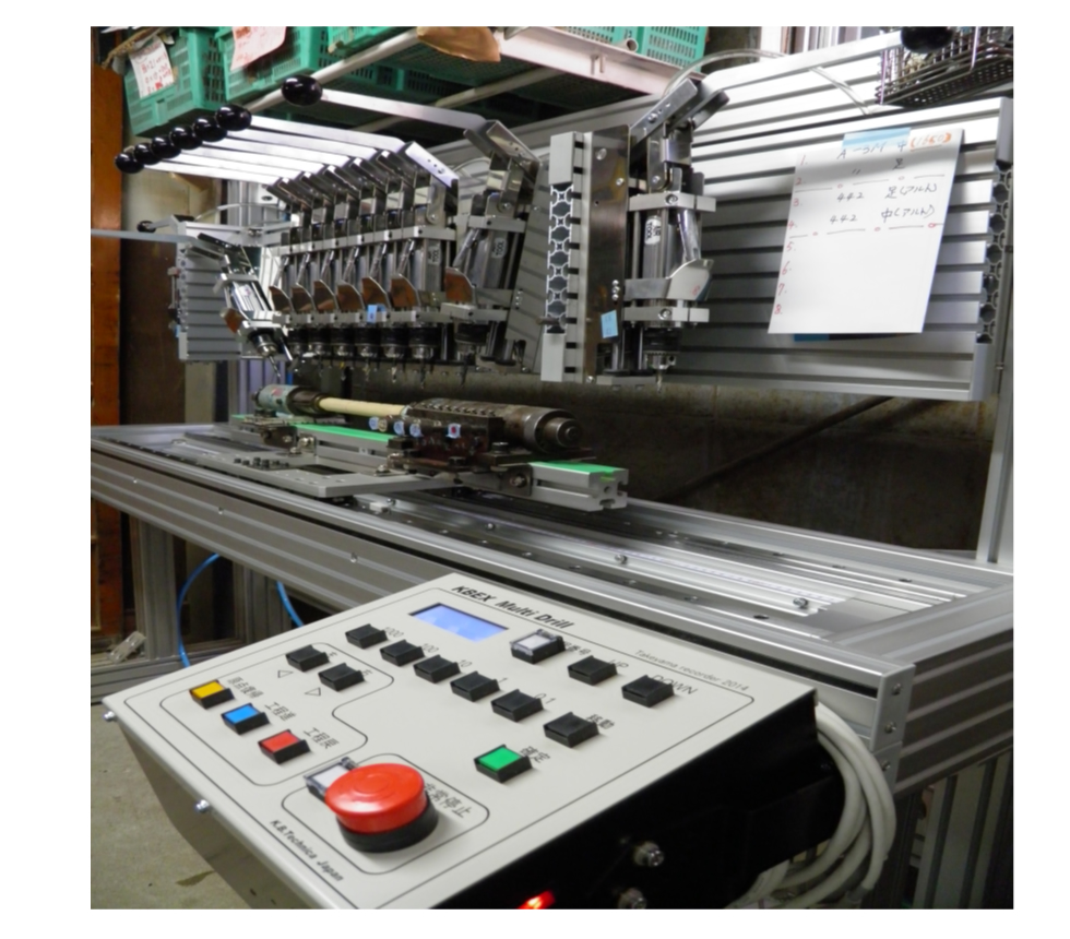 | 製作コメント | お客様からの仕様がない為、木工の穴加工の製作工程をヒアリングし、製作工程を効率よく 進められるように操作方法を含め弊社にて設計。 |